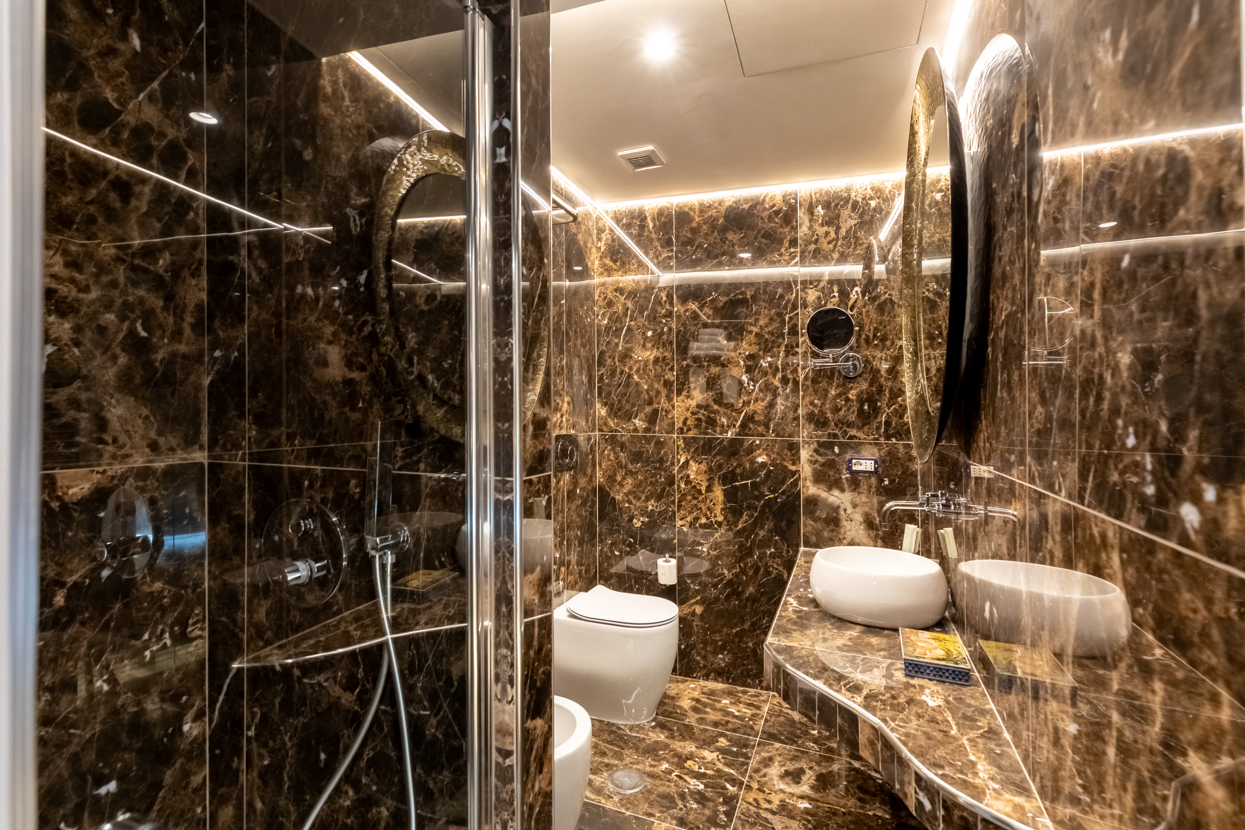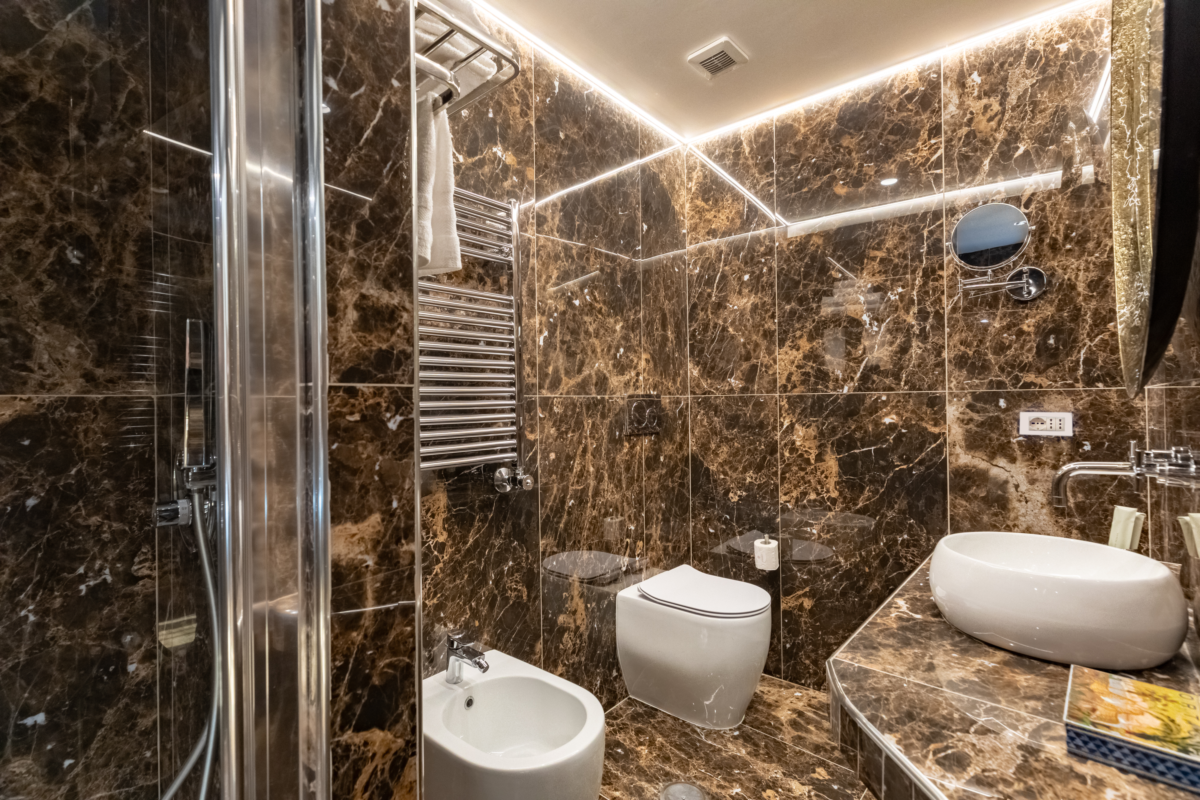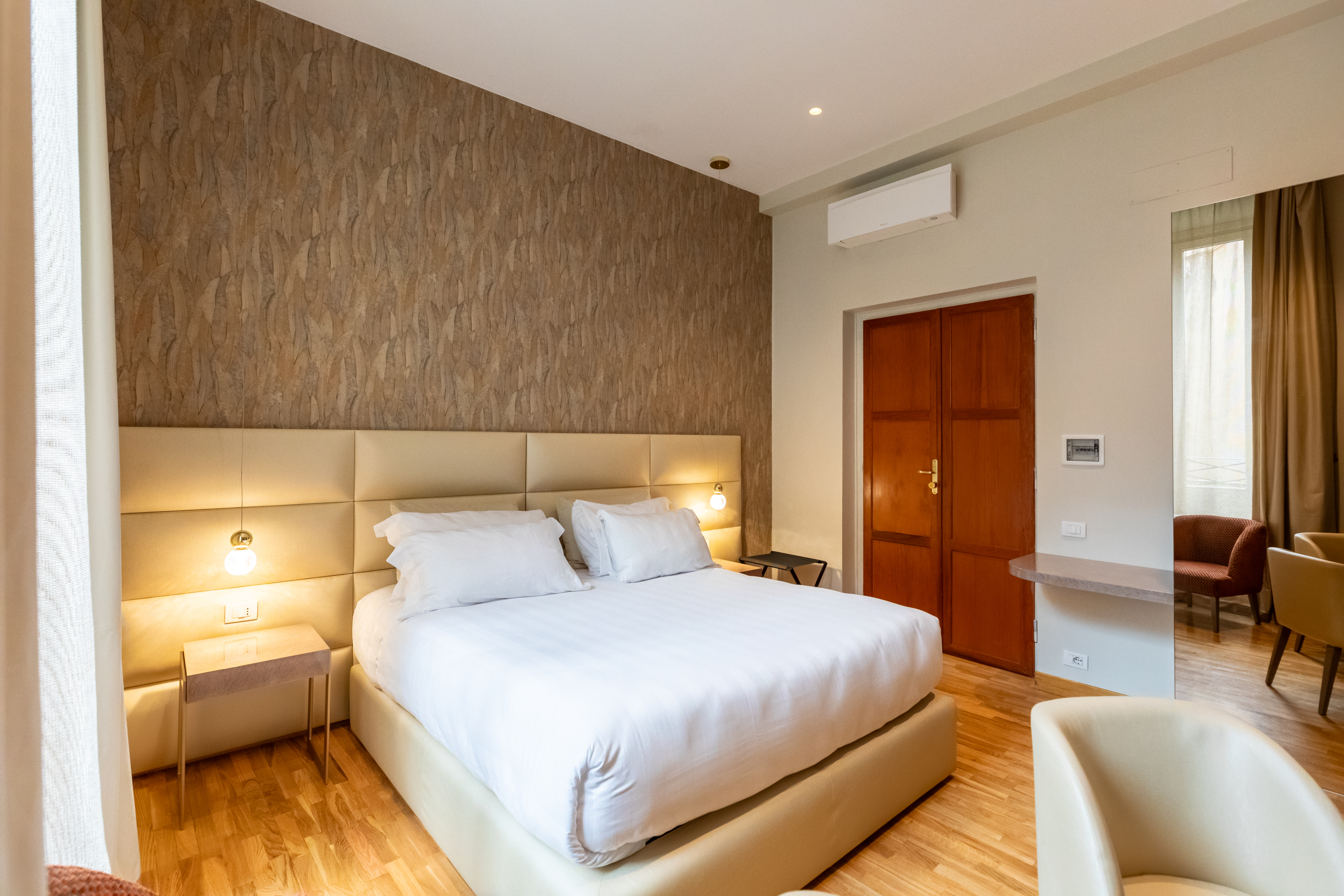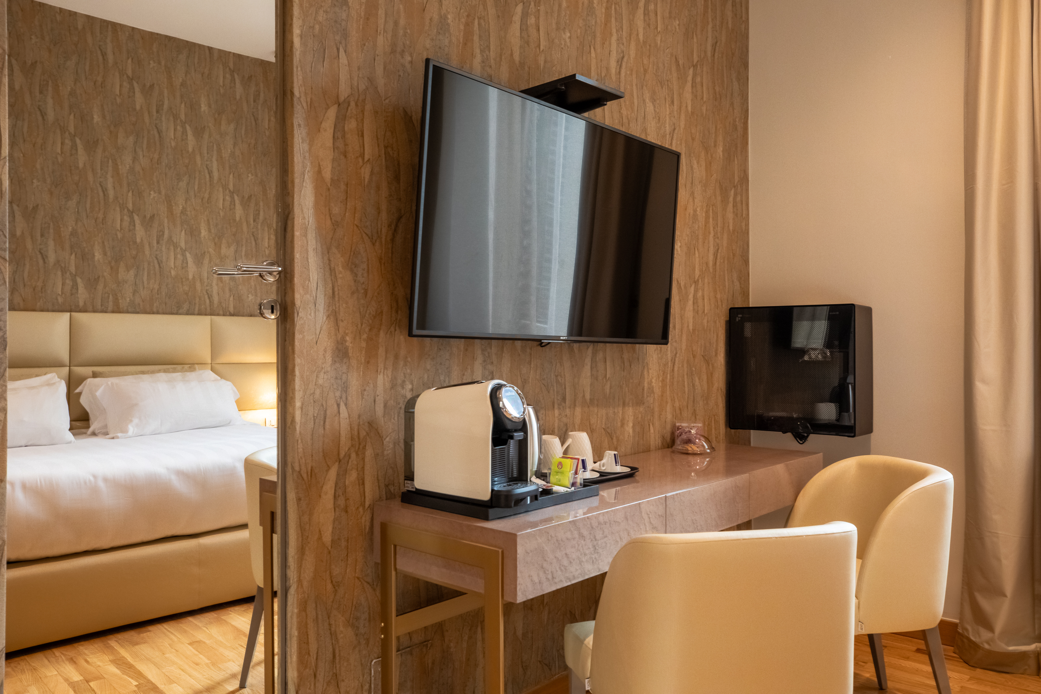 Entrambe le camere sono dotate di Smart TV da 55 pollici con Sky on demand, armadio spazioso dove riporre gli abiti, bagno privato completo di lavabo, bidet e doccia con cromoterapia. Sono inoltri presenti varie facilities tra le quali macchina per il caffè e bollitore, minibar, linea cortesia del brand Ortigia, cassaforte adatta anche per laptop, sistema di aria condizionata autonomo e un pratico ferro da stiro.
