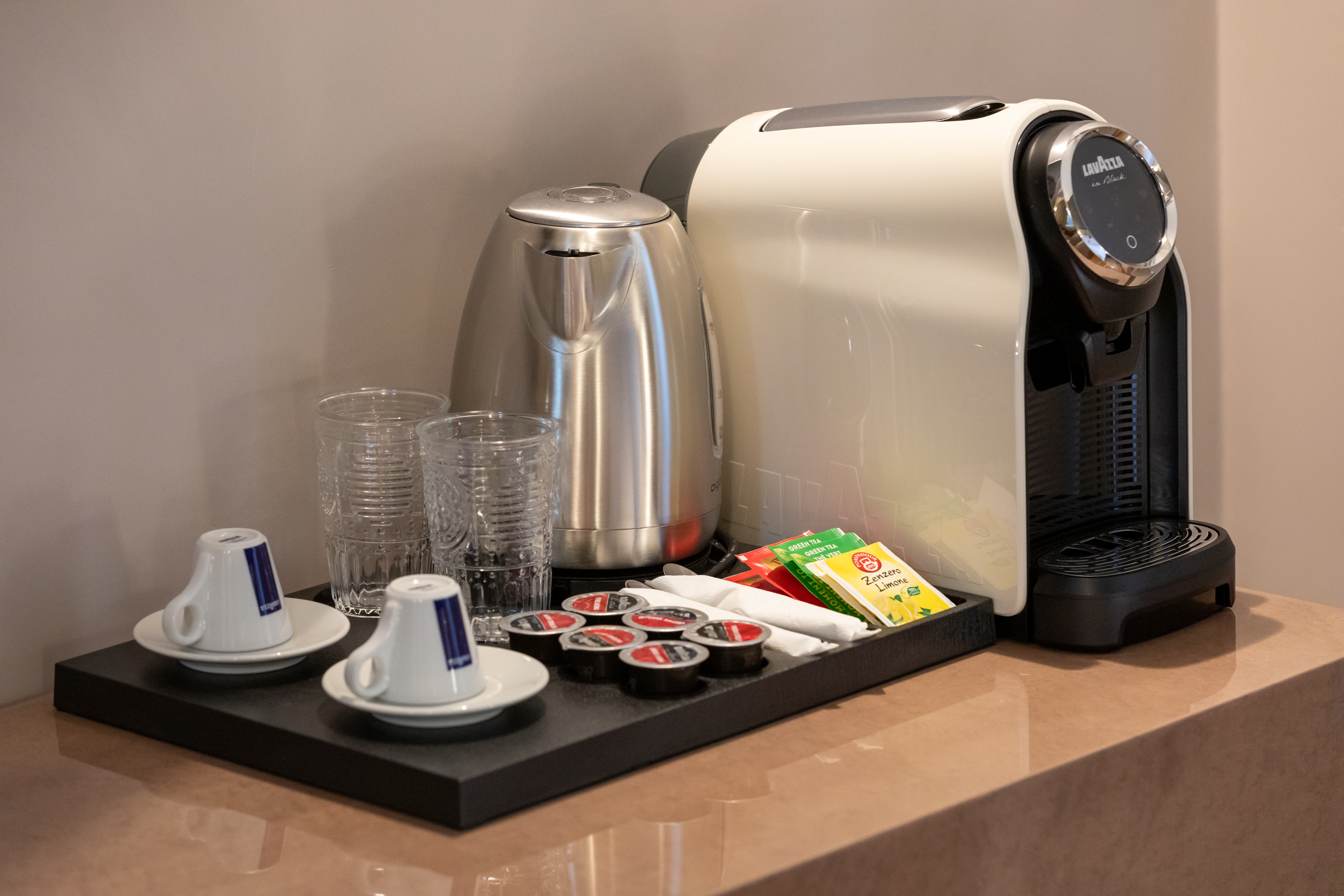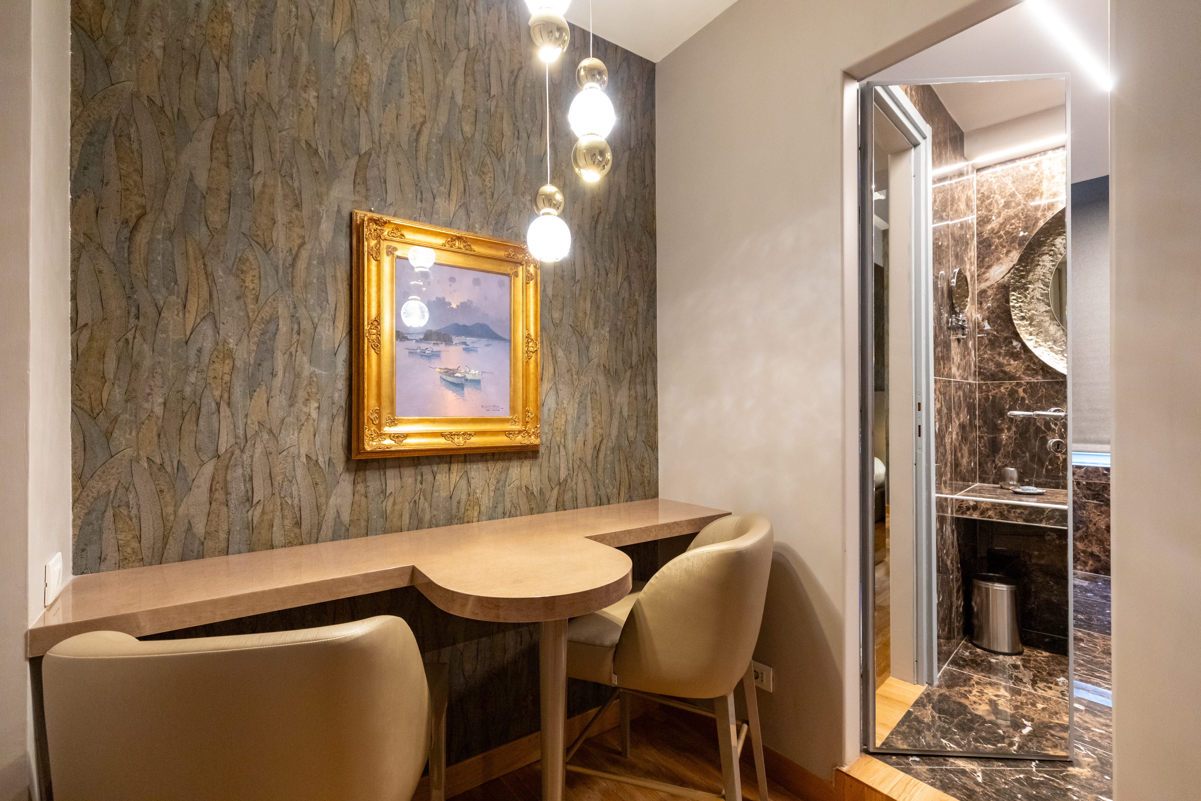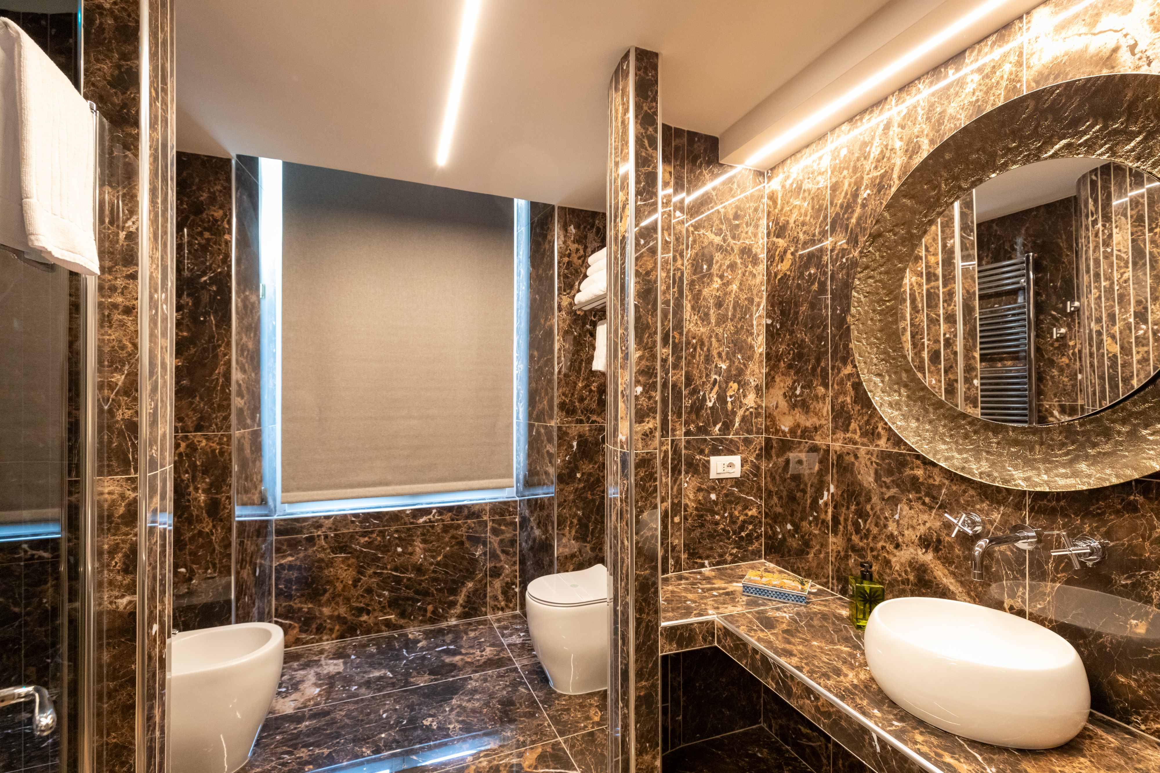 La struttura dispone di una camera Executive, dai toni grigio e beige e con affaccio sulle scalinate di Piazza di Spagna. La camera ha una metratura di 35 mq ed è dotata di Smart TV da 55 pollici con Sky on demand, armadio spazioso dove riporre gli abiti, bagno privato completo di lavabo, bidet e doccia con cromoterapia. Sono inoltri presenti varie facilities tra le quali macchina per il caffè e bollitore, minibar, linea cortesia del brand Ortigia, cassaforte adatta anche per laptop, sistema di aria condizionata autonomo e un pratico ferro da stiro.
